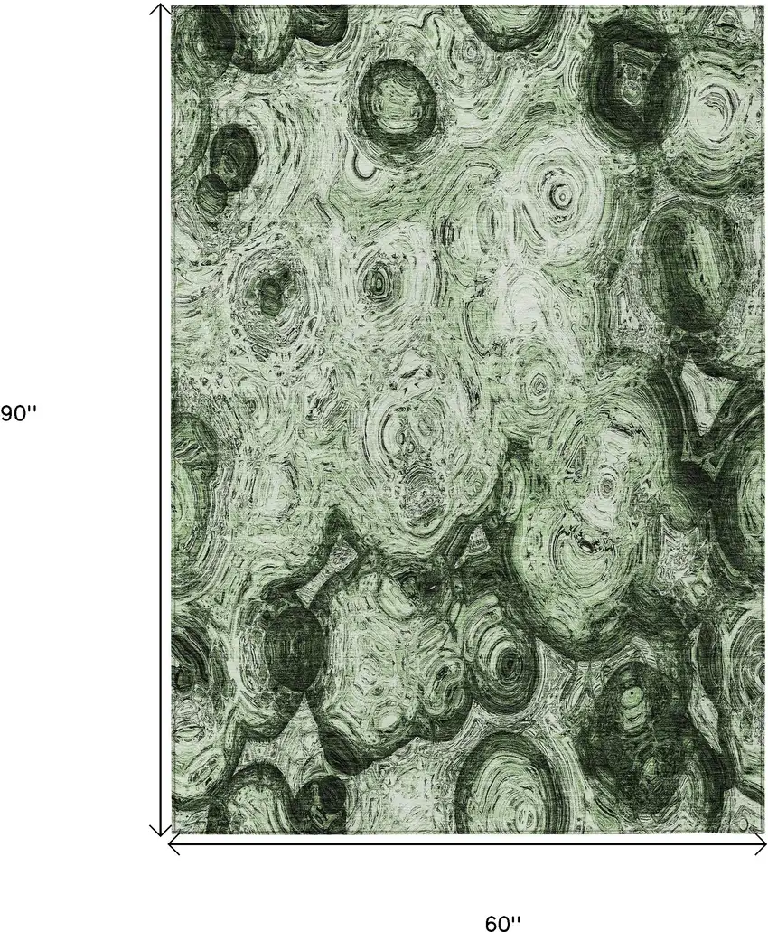This 5-foot x 8-foot artichoke green and emerald abstract washable indoor outdoor area rug, is a great way to add warmth to a room. This rectangle shaped rug features a abstract design that will work well both indoors or out. A classic shape marries with good looking design for your living room, hall, bedroom, porch, patio, or poolside. Ideal for outdoor spaces or high traffic areas with kids and pets, this rug is made from heavy duty polyester that is stain resistant to help repel water, dirt, and stains. Versatile in use, durable, and easy to maintain, this rug is an ideal solution to add a decorative and inviting touch to your indoor or outdoor space. 60-inch h x 90-inch w x 0.19-inch d.