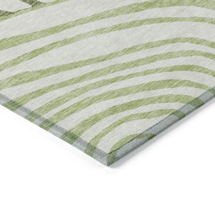 Artichoke Green And Fern Green Abstract Washable Indoor Outdoor Area Rug
