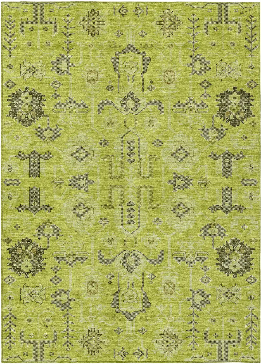 Artichoke Green And Fern Green Oriental Washable Indoor Outdoor Area Rug