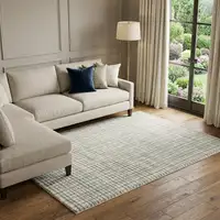 Artichoke Green And Gray Striped Washable Area Rug With UV Protection