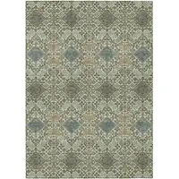 Artichoke Green And Ivory Abstract Washable Indoor Outdoor Area Rug