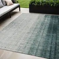 Artichoke Green And Ivory Abstract Washable Indoor Outdoor Area Rug