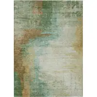 Artichoke Green And Ivory Abstract Washable Indoor Outdoor Area Rug