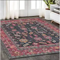Artichoke Green And Ivory Floral Washable Area Rug With UV Protection