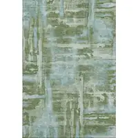 Artichoke Green And Ivory Geometric Washable Area Rug With UV Protection