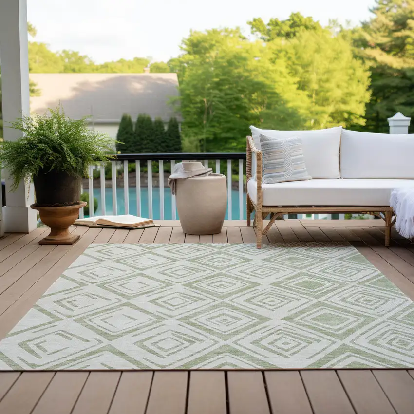 Artichoke Green And Ivory Geometric Washable Indoor Outdoor Area Rug