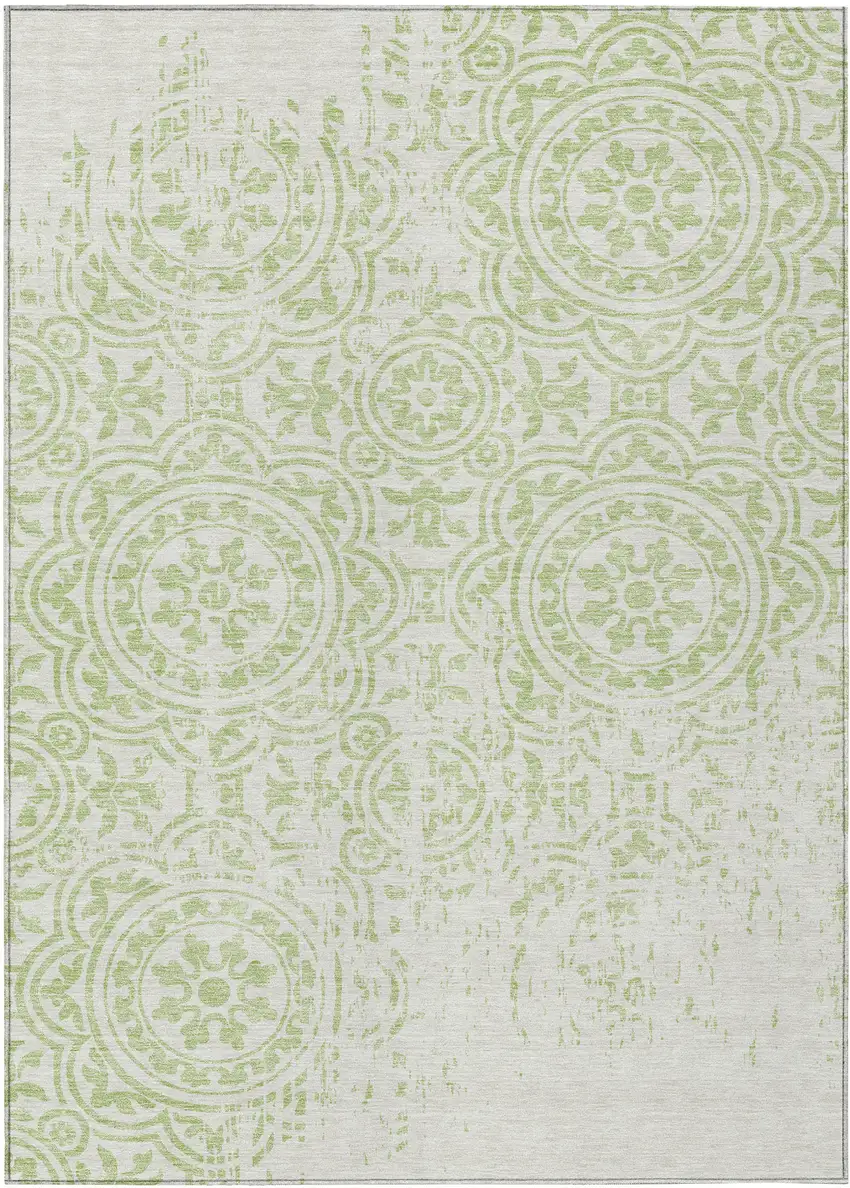 Artichoke Green And Ivory Medallion Washable Indoor Outdoor Area Rug