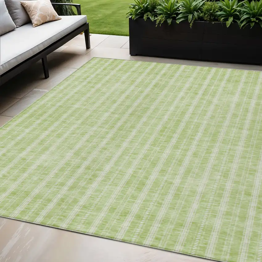 Artichoke Green And Ivory Striped Washable Indoor Outdoor Area Rug