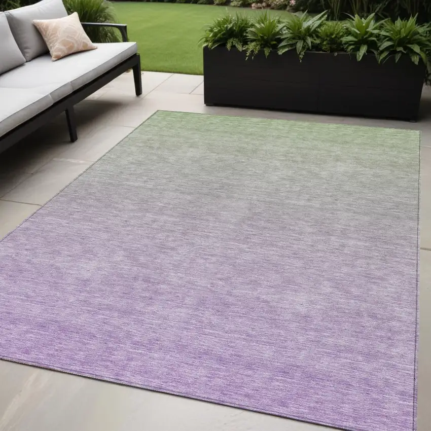 Artichoke Green And Lavender Ombre Washable Indoor Outdoor Area Rug