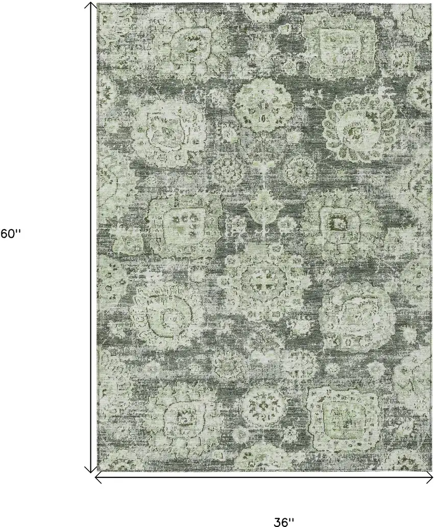 Add some artistry to your room with this 3-foot x 5-foot artichoke green and olive green floral washable indoor outdoor area rug. This rectangle shaped rug features a floral design that will work well both indoors or out. A classic shape marries with good looking design for your living room, hall, bedroom, porch, patio, or poolside. Ideal for outdoor spaces or high traffic areas with kids and pets, this rug is made from heavy duty polyester that is stain resistant to help repel water, dirt, and stains. Makes a great way to dress up your patio, porch, or poolside, but also works well as a durable and easy to maintain option in the kitchen, family room, or mudroom. 36-inch h x 60-inch w x 0.19-inch d.