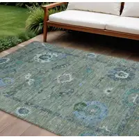 Artichoke Green And Sage Abstract Washable Indoor Outdoor Area Rug