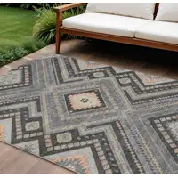 Artichoke Green And Silver Geometric Washable Indoor Outdoor Area Rug