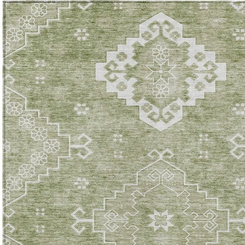 Set an inviting tone in your space with this 3-foot x 5-foot artichoke green beige and ivory medallion washable indoor outdoor area rug. This rectangle shaped rug features a medallion design that will work well both indoors or out. A classic shape marries with good looking design for your living room, hall, bedroom, porch, patio, or poolside. Ideal for outdoor spaces or high traffic areas with kids and pets, this rug is made from heavy duty polyester that is stain resistant to help repel water, dirt, and stains. Makes a great way to dress up your patio, porch, or poolside, but also works well as a durable and easy to maintain option in the kitchen, family room, or mudroom. 36-inch h x 60-inch w x 0.19-inch d.