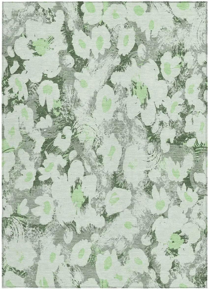 Set an inviting tone in your space with this 9-foot x 12-foot artichoke green floral washable stain resistant non skid indoor outdoor area rug. This rectangle shaped rug features a floral design in artichoke green to give it visual interest. A classic shape marries with good looking design for your space ideal for spaces with kids and pets, this rug is stain resistant to help repel stains and spilled liquids. Area rugs help to give warmth and sense of home to your space. 108-inch H x 144-inch W x 0.19-inch D