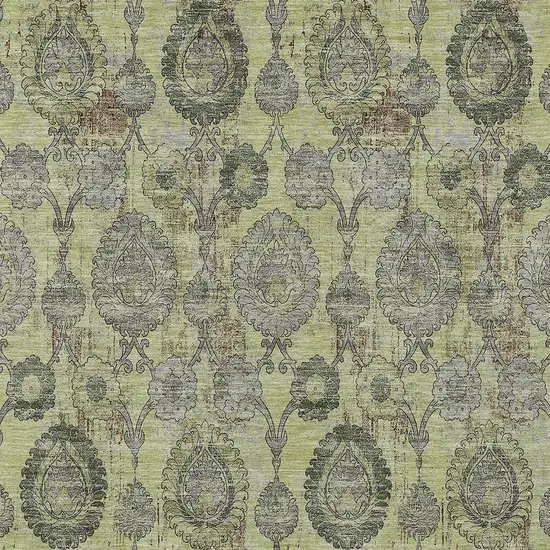 Add great coloration and comfortable texture to your space with this 10-foot x 14-foot artichoke green green and gray damask washable indoor outdoor area rug. This rectangle shaped rug features a damask design that will work well both indoors or out. A classic shape marries with good looking design for your living room, hall, bedroom, porch, patio, or poolside. Ideal for outdoor spaces or high traffic areas with kids and pets, this rug is made from heavy duty polyester that is stain resistant to help repel water, dirt, and stains. Versatile in use, durable, and easy to maintain, this rug is an ideal solution to add a decorative and inviting touch to your indoor or outdoor space. 120-inch h x 168-inch w x 0.19-inch d.