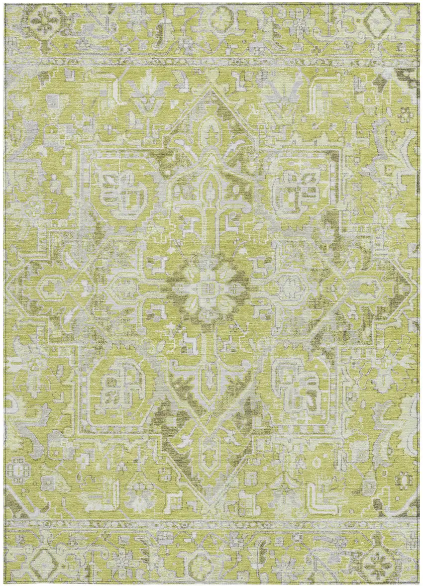 Add great coloration and comfortable texture to your space with this 5-foot x 8-foot artichoke green oriental washable stain resistant non skid indoor outdoor area rug. This rectangle shaped rug features a oriental design in artichoke green to give it visual interest. A classic shape marries with good looking design for your space ideal for spaces with kids and pets, this rug is stain resistant to help repel stains and spilled liquids. Place this area rug against a hardwood or tile floor and it will enliven your living space with style and sophistication. 60-inch H x 90-inch W x 0.19-inch D