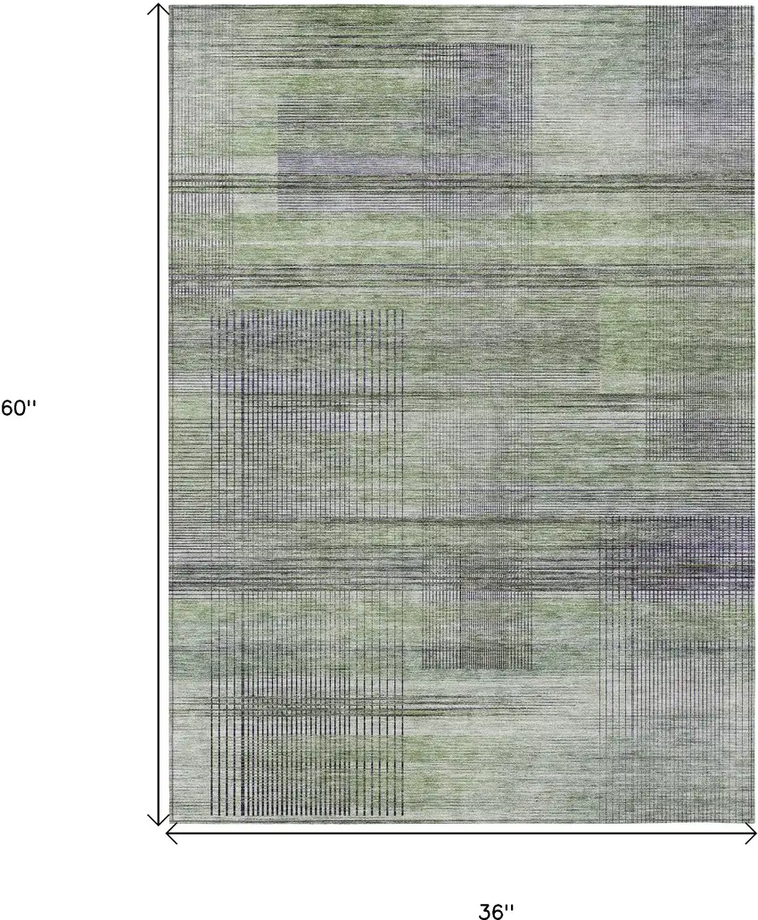 Add great coloration and comfortable texture to your space with this 3-foot x 5-foot artichoke green purple and fern green striped washable indoor outdoor area rug. This rectangle shaped rug features a striped design that will work well both indoors or out. A classic shape marries with good looking design for your living room, hall, bedroom, porch, patio, or poolside. Ideal for outdoor spaces or high traffic areas with kids and pets, this rug is made from heavy duty polyester that is stain resistant to help repel water, dirt, and stains. Versatile in use, durable, and easy to maintain, this rug is an ideal solution to add a decorative and inviting touch to your indoor or outdoor space. 36-inch h x 60-inch w x 0.19-inch d.