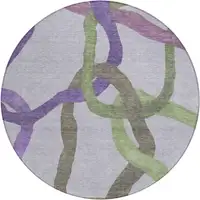 Set an inviting tone in your space with this 8-foot round artichoke green round abstract washable non skid indoor outdoor area rug. This geometric round shaped rug features a abstract pattern in artichoke green that combines a good looking print with a unique and updated shape. The mix of shape, color, and design gives this rug refreshing visual interest. Ideal for outdoor spaces or high traffic areas with kids and pets, this rug is made from heavy duty polyester that is stain resistant to help repel water, dirt, and stains. Makes a great way to dress up your patio, porch, or poolside, but also works well as a durable and easy to maintain option in the kitchen, family room, or mudroom. 96-inch h x 96-inch w x 0.19-inch d