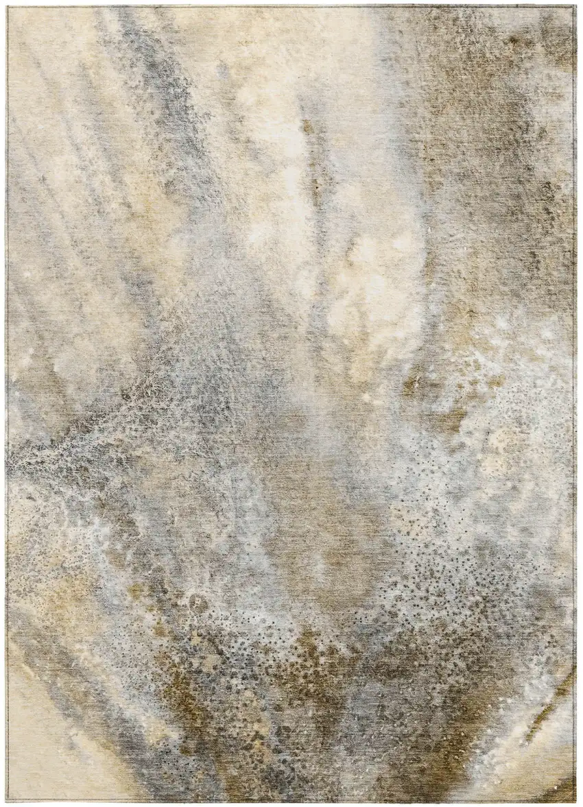 Beige Abstract Washable Non Skid Indoor Outdoor Area Rug