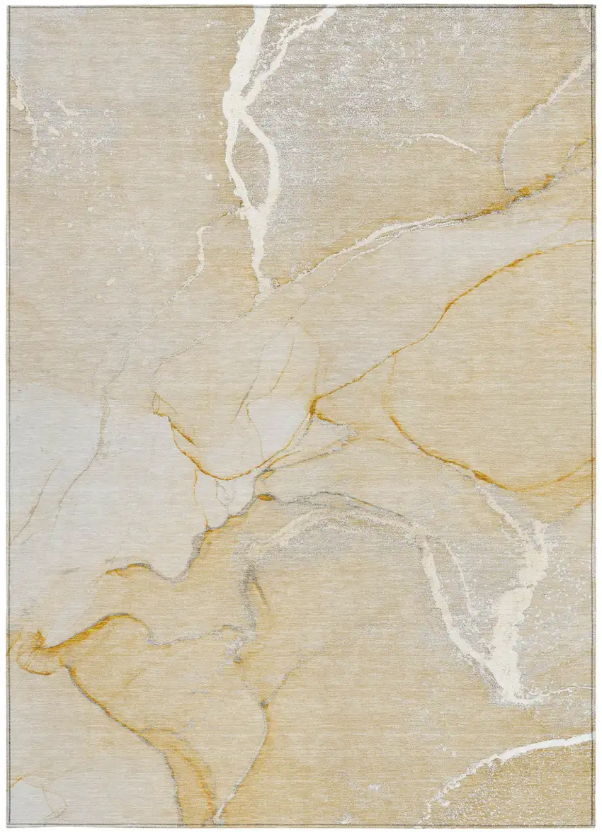 Beige Abstract Washable Non Skid Indoor Outdoor Area Rug