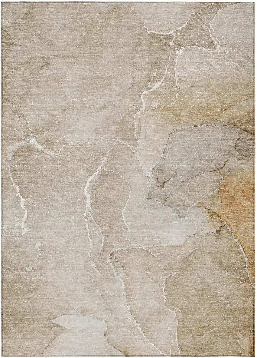 Beige Abstract Washable Non Skid Indoor Outdoor Area Rug