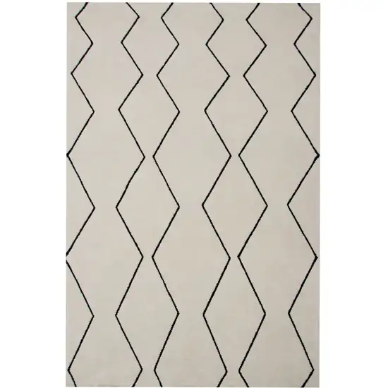 Beige and Black Geometric Power Loom Distressed Area Rug