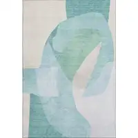 Beige And Blue Wool Abstract Hand Tufted Area Rug