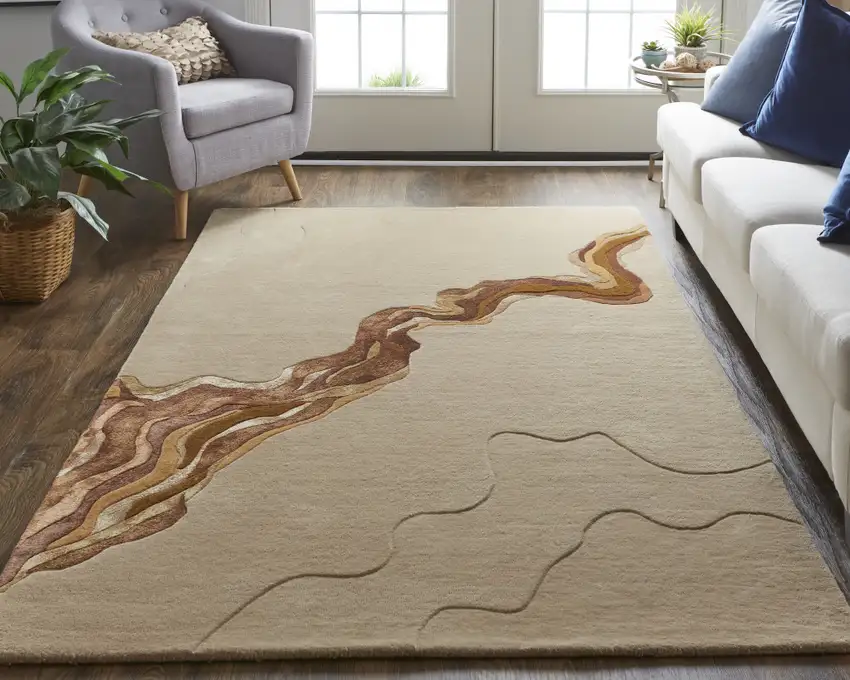 Beige and Brown Abstract Hand Tufted Area Rug