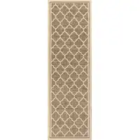 Beige And Brown Floral Medallion Runner Rug With Fringe