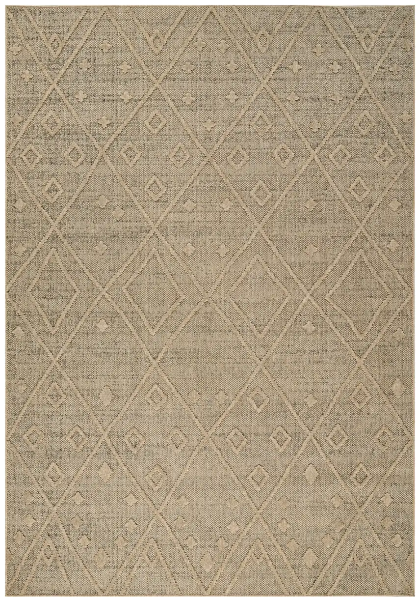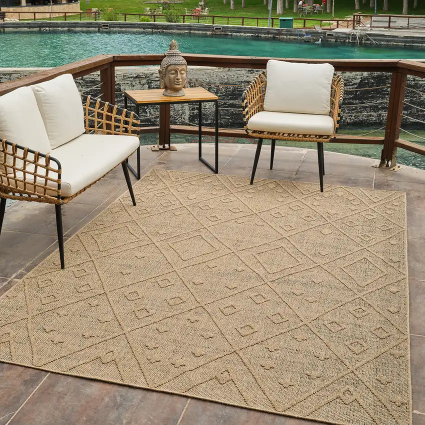 Beige and Brown Geometric Distressed Indoor Outdoor Area Rug
