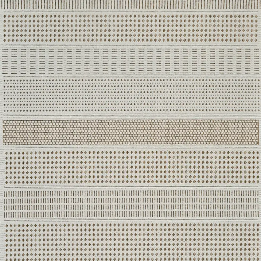 Beige and Brown Geometric Distressed Indoor Outdoor Area Rug