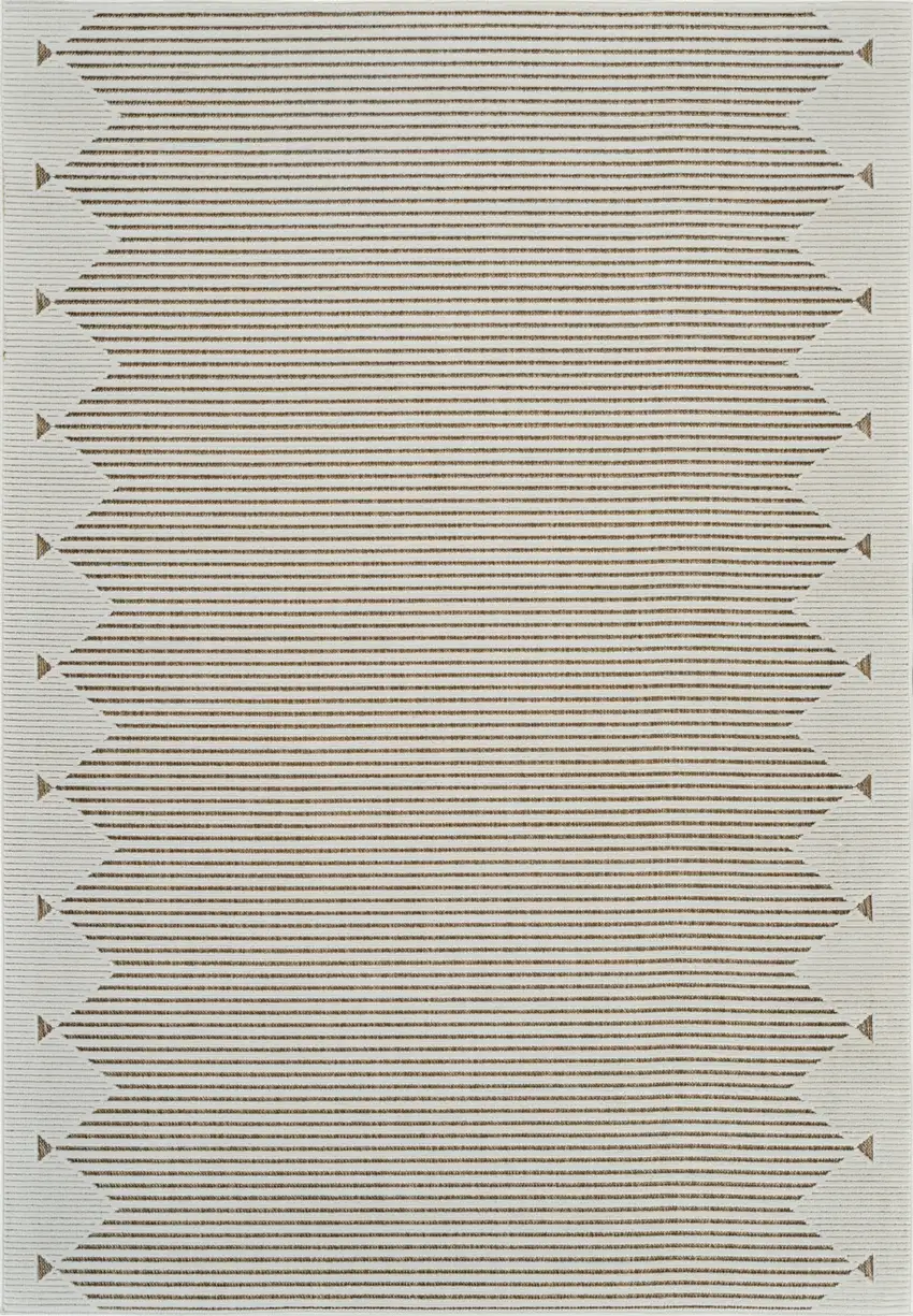 Beige and Brown Geometric Distressed Indoor Outdoor Area Rug
