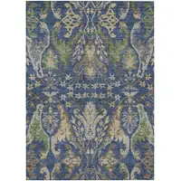 Beige And Charcoal Damask Washable Indoor Outdoor Area Rug