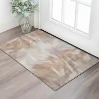 Beige And Gray Abstract Distressed Area Rug With Fringe