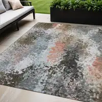 Beige And Gray Ikat Washable Indoor Outdoor Area Rug