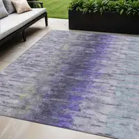 Beige And Gray Striped Washable Indoor Outdoor Area Rug