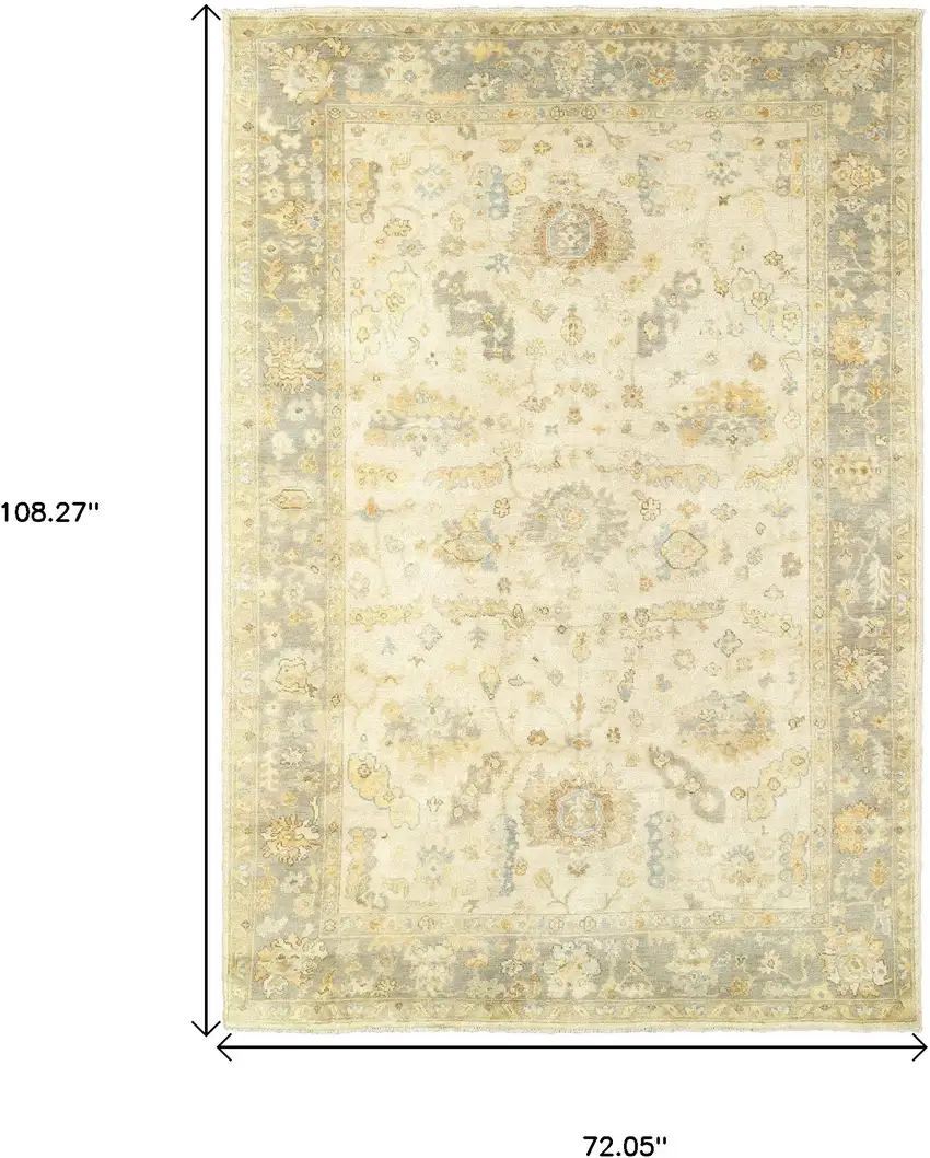 Beige And Gray Wool Oriental Hand Knotted Area Rug