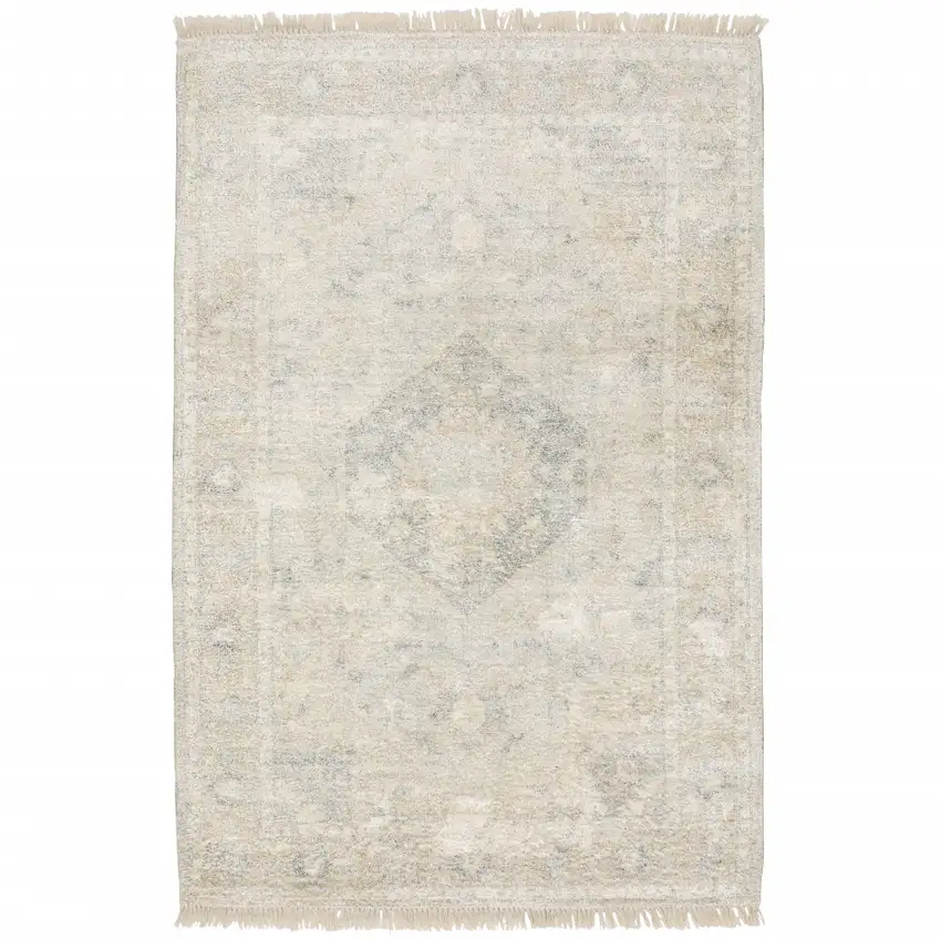 Beige And Grey Oriental Hand Loomed Stain Resistant Area Rug With Fringe