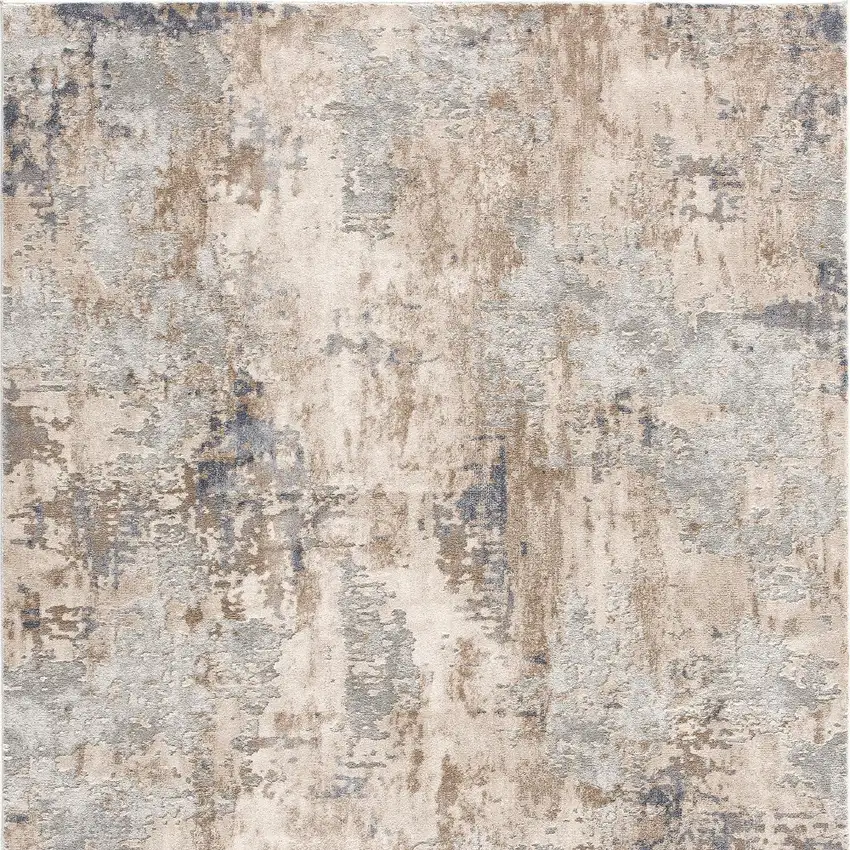 This rug showcases an abstract blend of ivory and beige hues, quietly amplifying the aesthetics of any room. Its artistic design can make a dramatic statement or blend seamlessly with neutral decor.