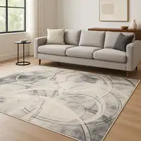 Beige And Ivory Abstract Washable Area Rug With UV Protection