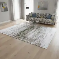 Beige And Ivory Abstract Washable Area Rug With UV Protection