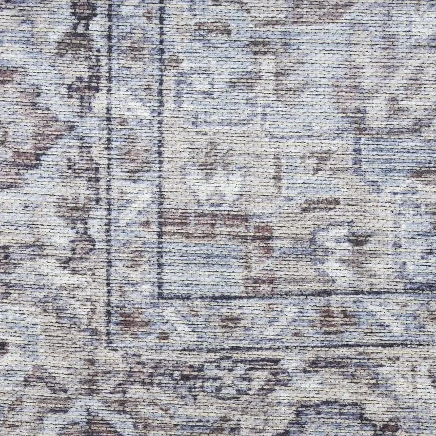 Beige and Ivory Floral Power Loom Distressed Washable Area Rug