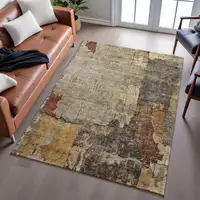 Beige And Ivory Geometric Washable Area Rug With UV Protection