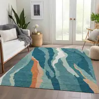 Beige And Ivory Geometric Washable Area Rug With UV Protection