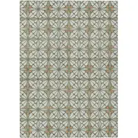 Beige And Ivory Geometric Washable Indoor Outdoor Area Rug