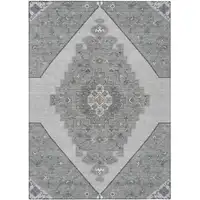 Beige And Ivory Geometric Washable Indoor Outdoor Area Rug