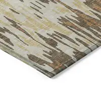 Beige And Ivory Geometric Washable Indoor Outdoor Area Rug