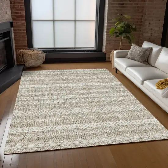 Beige And Ivory Southwestern Washable Indoor Outdoor Area Rug