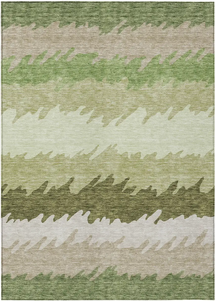 Set an inviting tone in your space with this 9-foot x 12-foot beige and olive green striped washable indoor outdoor area rug. This rectangle shaped rug features a striped design that will work well both indoors or out. A classic shape marries with good looking design for your living room, hall, bedroom, porch, patio, or poolside. Ideal for outdoor spaces or high traffic areas with kids and pets, this rug is made from heavy duty polyester that is stain resistant to help repel water, dirt, and stains. Makes a great way to dress up your patio, porch, or poolside, but also works well as a durable and easy to maintain option in the kitchen, family room, or mudroom. 108-inch h x 144-inch w x 0.19-inch d.