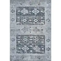 Beige Blue And Gold Floral Washable Area Rug With UV Protection